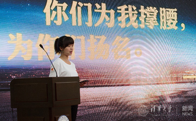 工物系2015级本科生张毓麟在北京团市委“青年服务国家”暑期实践出征仪式上发言。