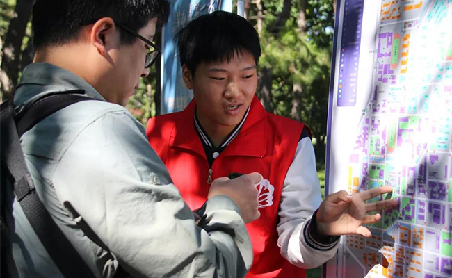 校园志愿讲解活动在清华校园内日晷、图书馆老馆、荷塘、西湖游泳池、西门5处设置了固定志愿服务站,为游客提供讲解向导、问询解答、互动合影等志愿讲解服务。