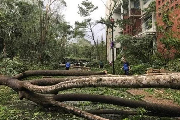9月17日,风停雨歇,台风终于过去,然而“山竹”威力巨大,即便学院已提前做了大量预备和防范工作,“山竹”肆虐后的校园仍然“满目疮痍”。