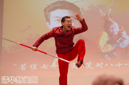 章金莱一袭红衣登上讲台,演讲谈笑风生,表演身手敏捷,丝毫不减“大圣”当年风采。对于孙悟空这一经典形象,章金莱认为其有儒释道各种思想的缩影。孙悟空白手起家不断拼搏、忠于师傅恪尽职守、历经磨难西取真经的传奇经历,对大学生有很好的激励作用。他还借《西游记》的故事,鼓励清华学子怀揣理想,勤于攀登,勇于进取,学习唐僧师徒不畏艰险西行取经的可贵精神,为成国之栋梁而不懈奋斗。