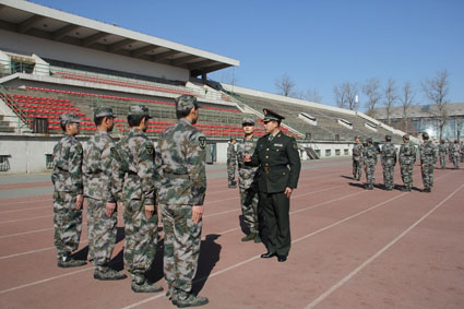 AG(中国)AG·官方网页版网3月6日电(学生通讯员 王静 任子轩)3月1日上午,AG(中国)AG·官方网页版全体国防生在东操进行了2013——2014学年度春季学期的首次早操和骨干培训。