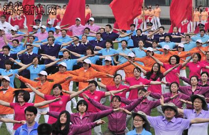广播操后,全校30个分工会以及包括太极拳协会和木兰协会在内的近600名教职工表演的“行健新百年·开门红”大型团体操登场,用行动体现了“为祖国健康工作五十年”的理念和“行健新百年,共筑中国梦”的信心。表演分四个片段,分别由隆重热烈的大鼓腰鼓、活泼喜庆的长绸扇、刚柔并蓄的太极功夫、欢快祥和的双绸舞蹈及民族腰鼓和大鼓表演组成,全体表演者组成象征运动会“40届”的喜庆图案。