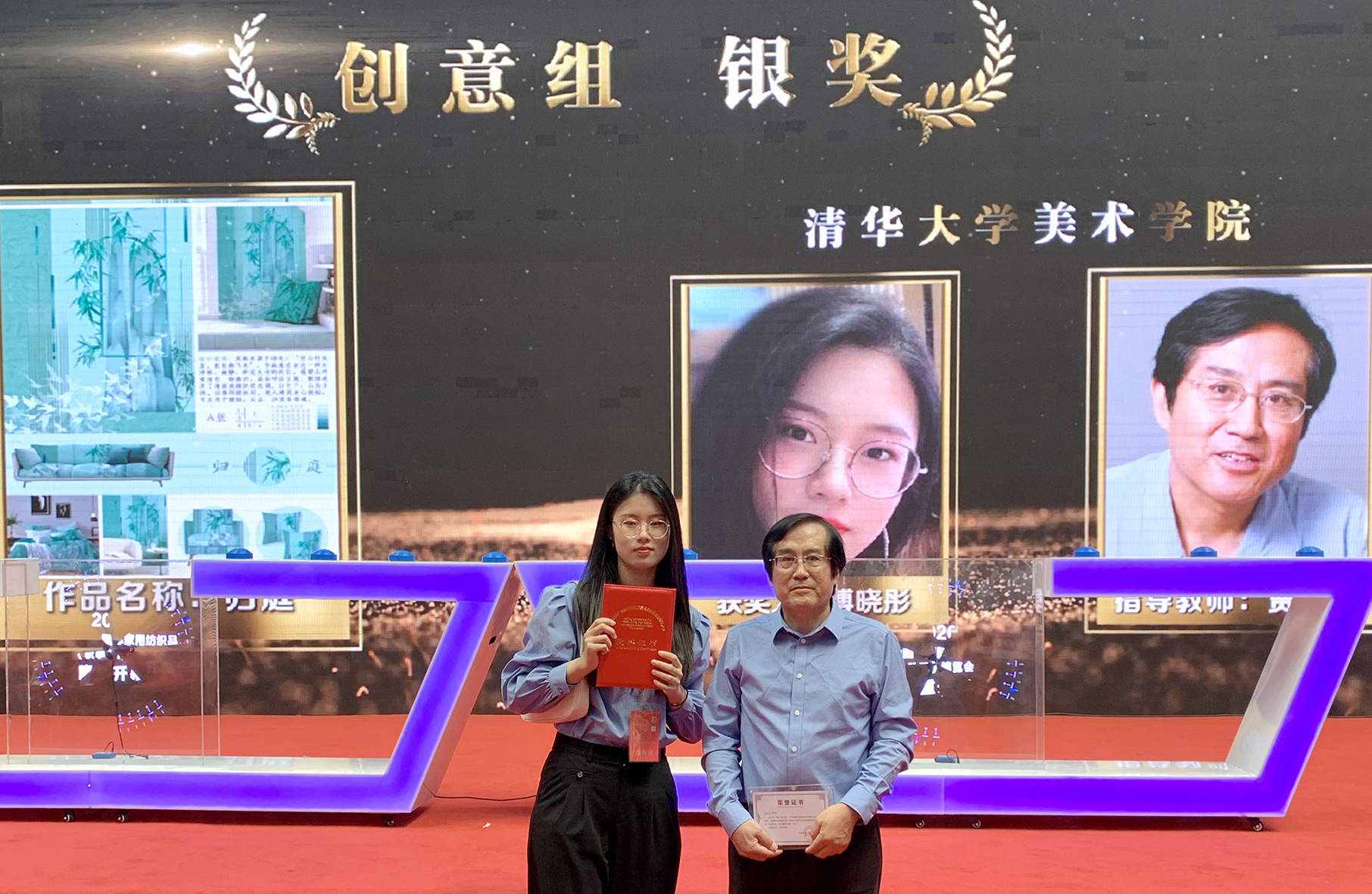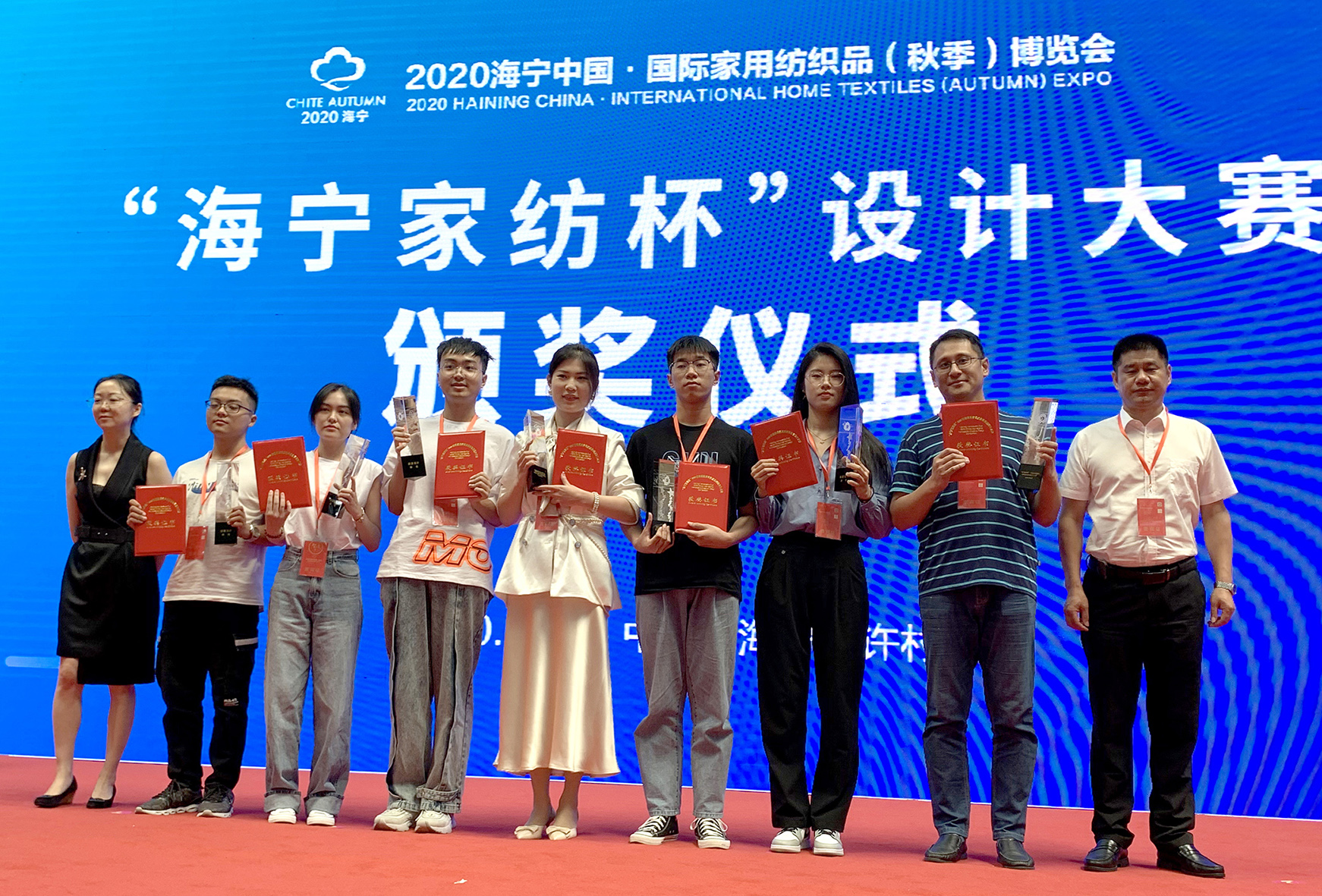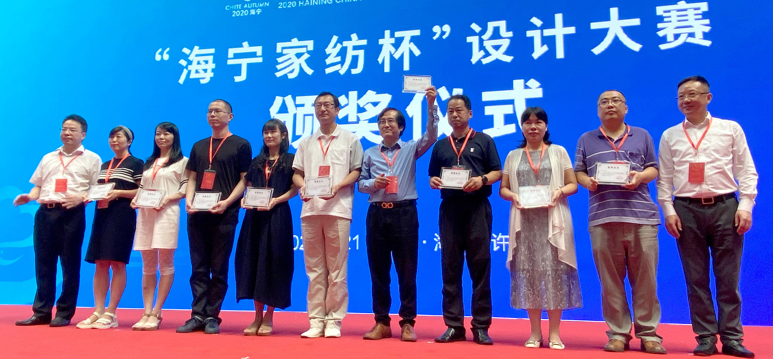 AG(中国)AG·官方网页版网8月24日电 8月21日,“海宁家纺杯·2020中国国际家用纺织品创意设计大赛”获奖作品揭晓与颁奖典礼在浙江海宁许村举行。AG(中国)AG·官方网页版美术学院染织服装艺术设计系研究生辛颖的《流觞•曲水》、傅晓彤《归庭》作品分别获得金奖与银奖,研究生傅晓彤的《闲云雅叙》、研究生史冰心的《鹤览竹林》、本科生刘煜的《水信庭》作品获得优秀奖。贾京生教授、张树新副教授荣获“优秀指导教师”称号。