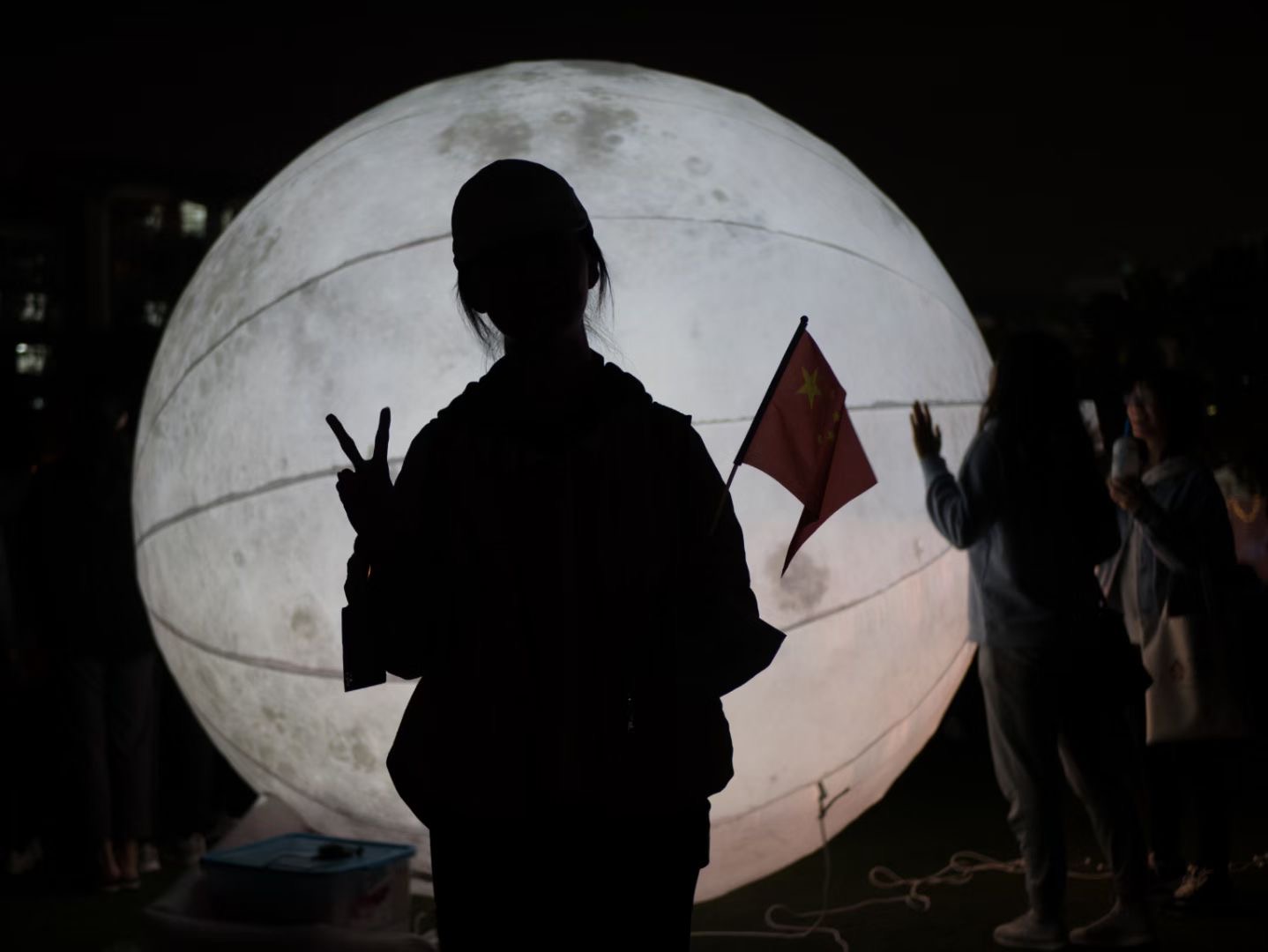 同学们参与活动、在月球灯前拍照
