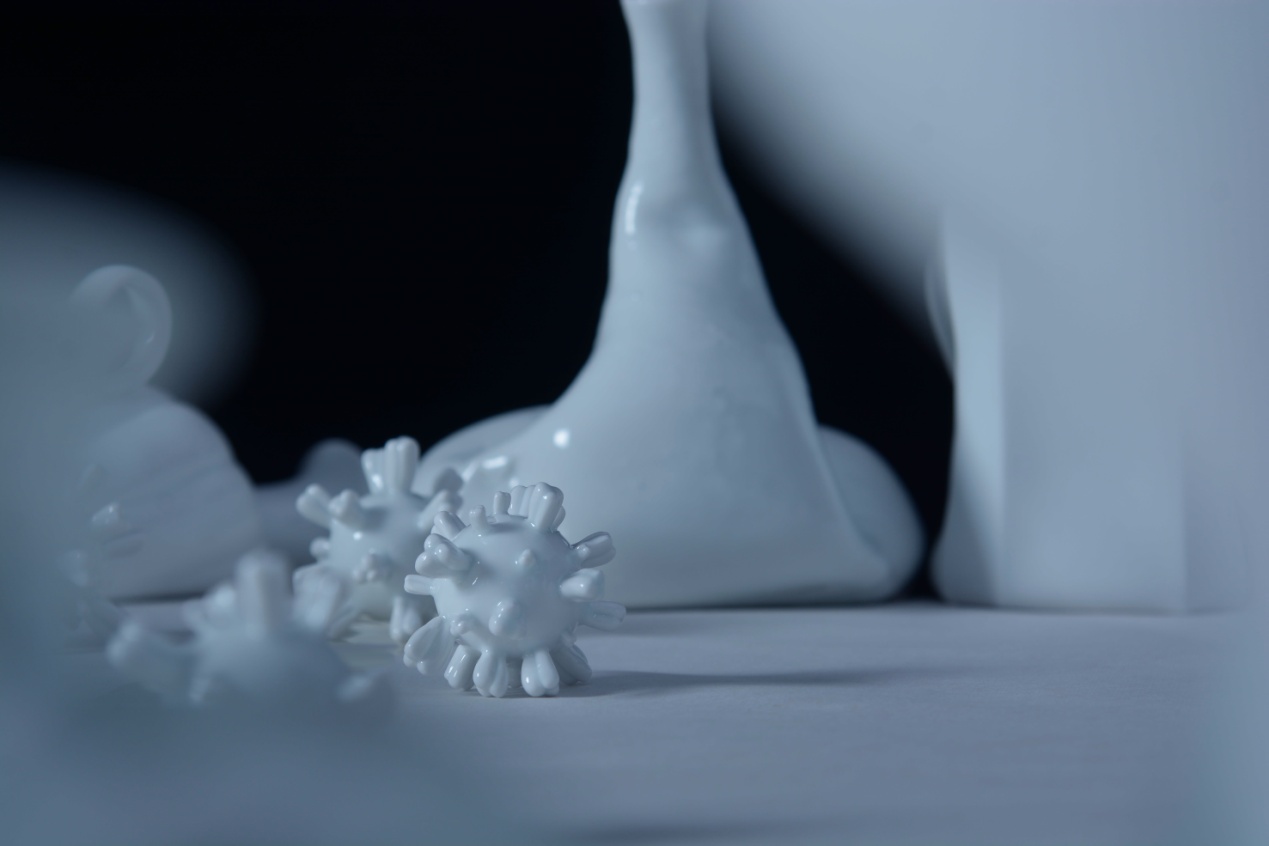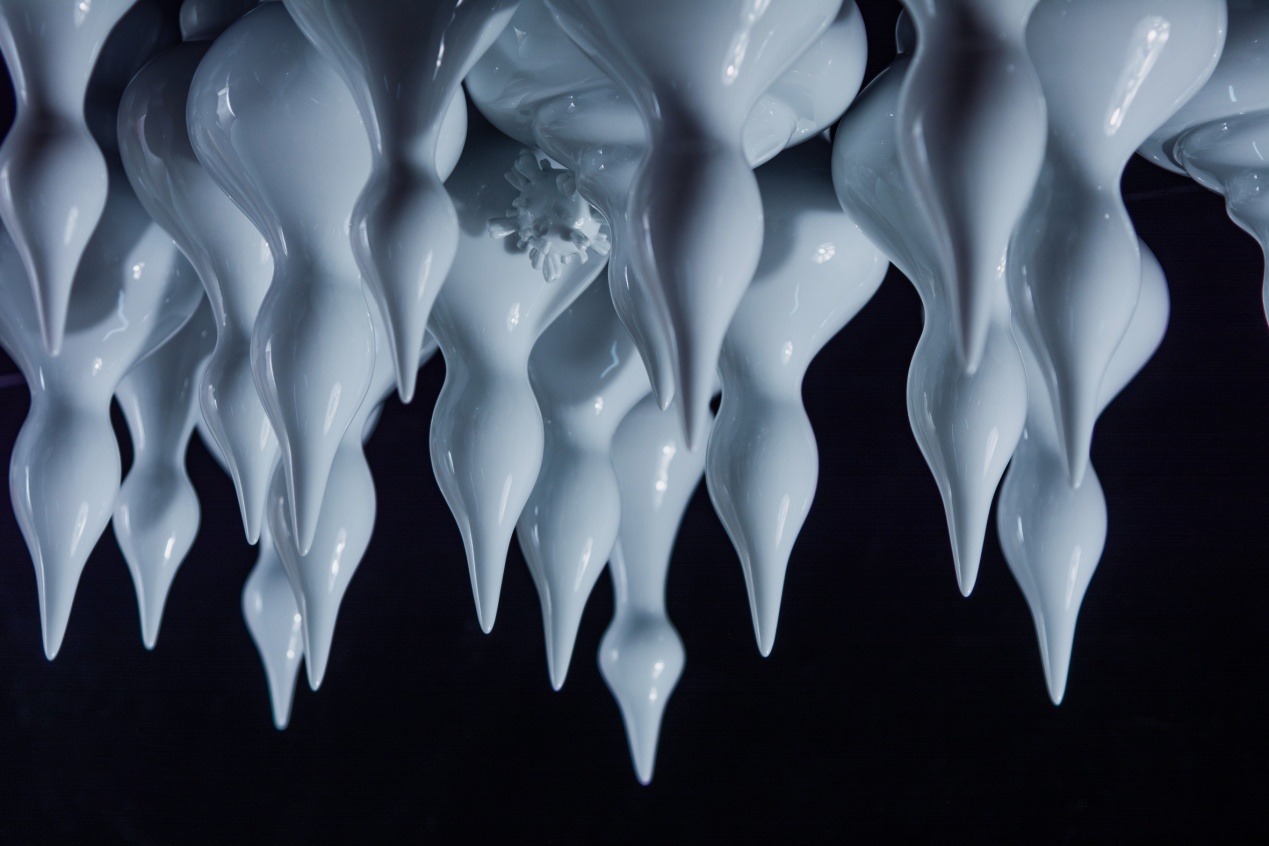 《我很好,你呢》是一套由一百余件陶瓷器物组成的陶瓷装置作品,宋丹杨的灵感来源于今年疫情期间她所感受到的来自个体以及集体的焦虑情绪。通过陶瓷材料本身的脆弱以及易碎感,结合器物形态的异变表现了这种焦虑情绪与她所感受到的不安全感,借用陈列方式的设计表达了焦虑情绪积极转化的过程,从而展现一种积极向上的态度。宋丹杨尝试将陶瓷语言与社会热点问题相结合。