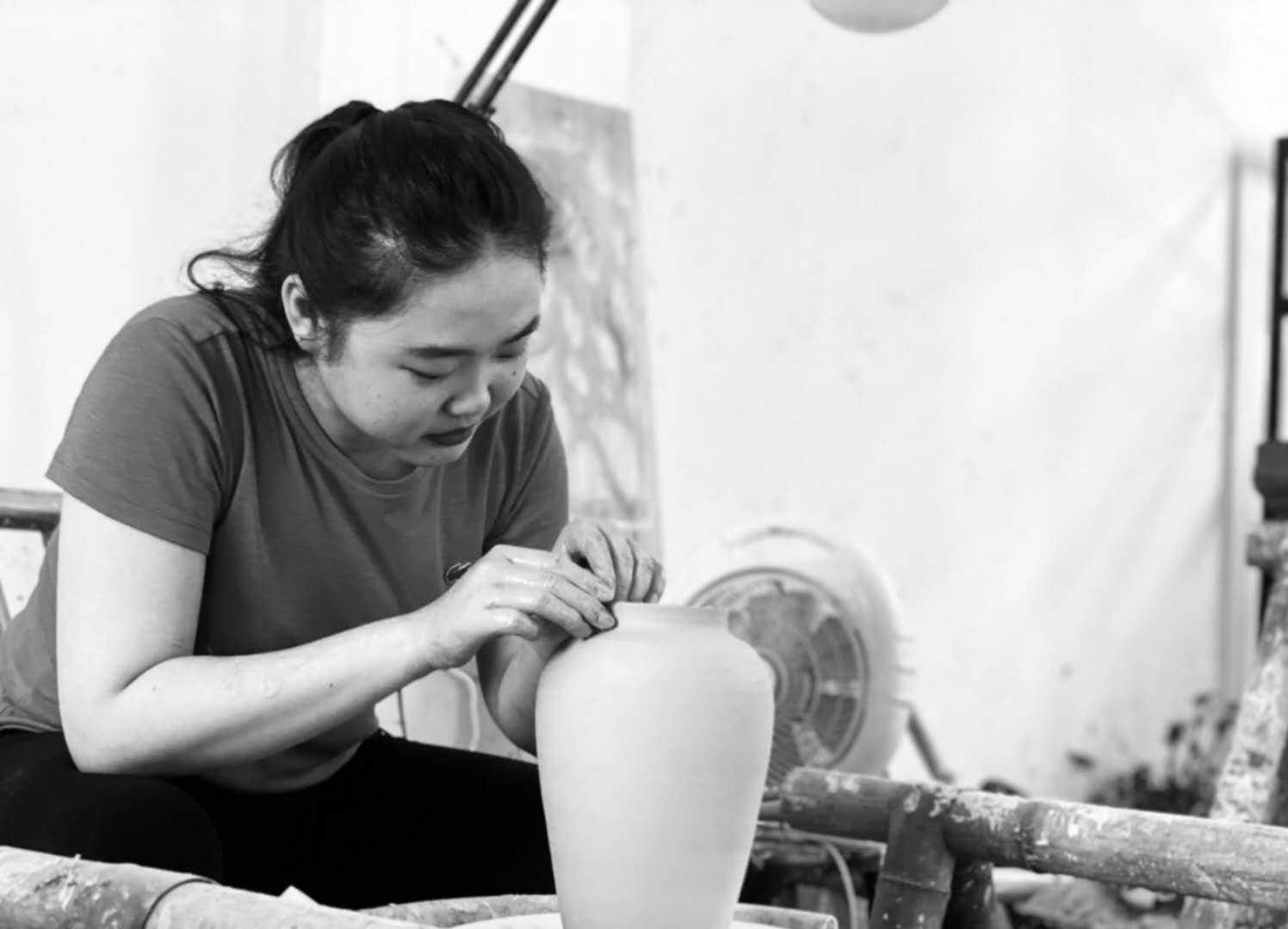 宋丹杨在进行制陶艺术创作
