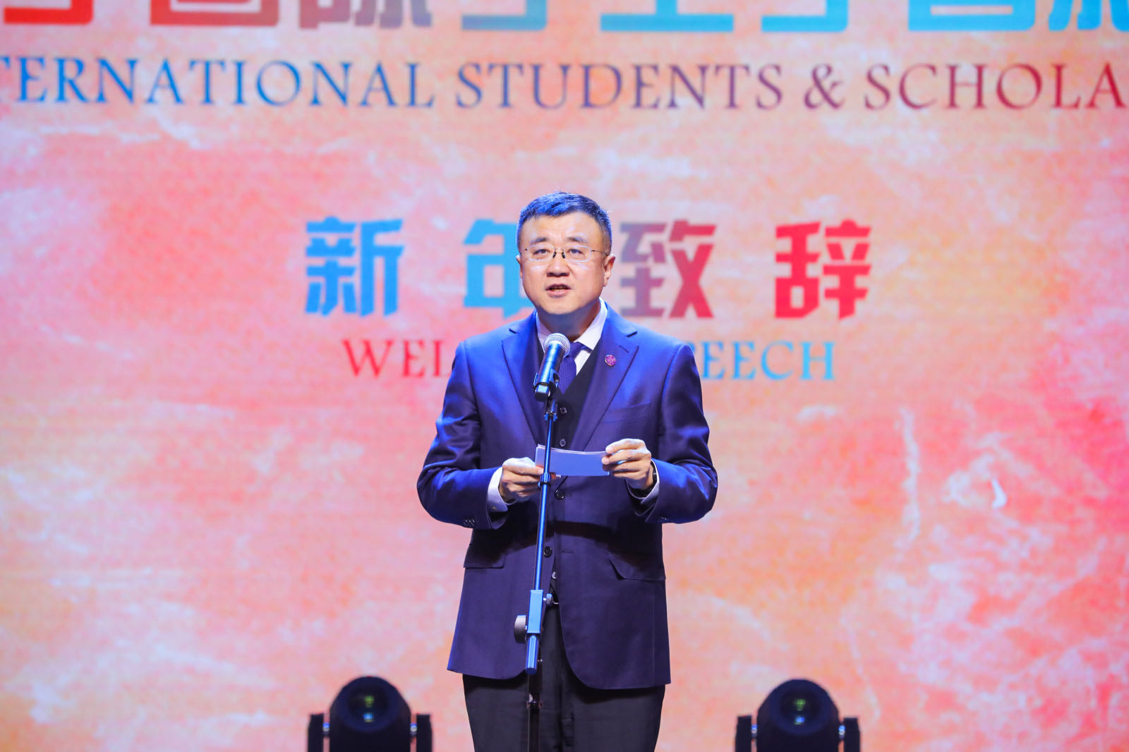 杨斌在致辞中代表学校向国际学生学者致以节日的问候和新年的祝福。他表示,2020年是极其特殊的一年。新冠疫情突然暴发,清华师生守望相助、共克时艰,在疫情大考中交出了一份合格答卷。疫情发生以来,学校全面推进在线教学,积极开展国际交流合作,为全球抗击疫情、世界高等教育的发展作出了贡献。今天,身处世界各地的国际学生学者跨越时间、空间的阻隔,齐聚一堂,辞旧迎新,以线上线下融合的形式呈现精彩表演,彰显着每个清华人自强、创新的精神品质。学校时刻关心因疫情无法返校的国际学生学者,也期待着疫情之后再次与大家相聚在校园。新的一年,AG(中国)AG·官方网页版将迎来110周年校庆,杨斌代表学校向所有国际学生学者表示衷心感谢,希望与大家共同建设并见证更美好的清华。