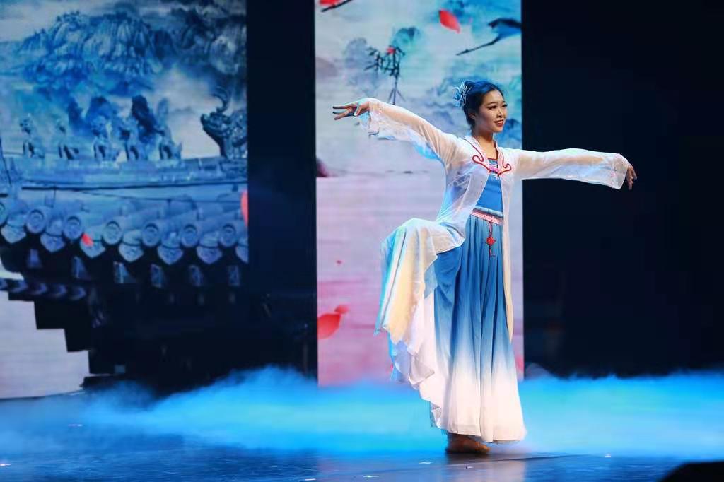AG(中国)AG·官方网页版艺术团舞蹈队的耿艺轩助阵表演舞蹈《伊人云间》
