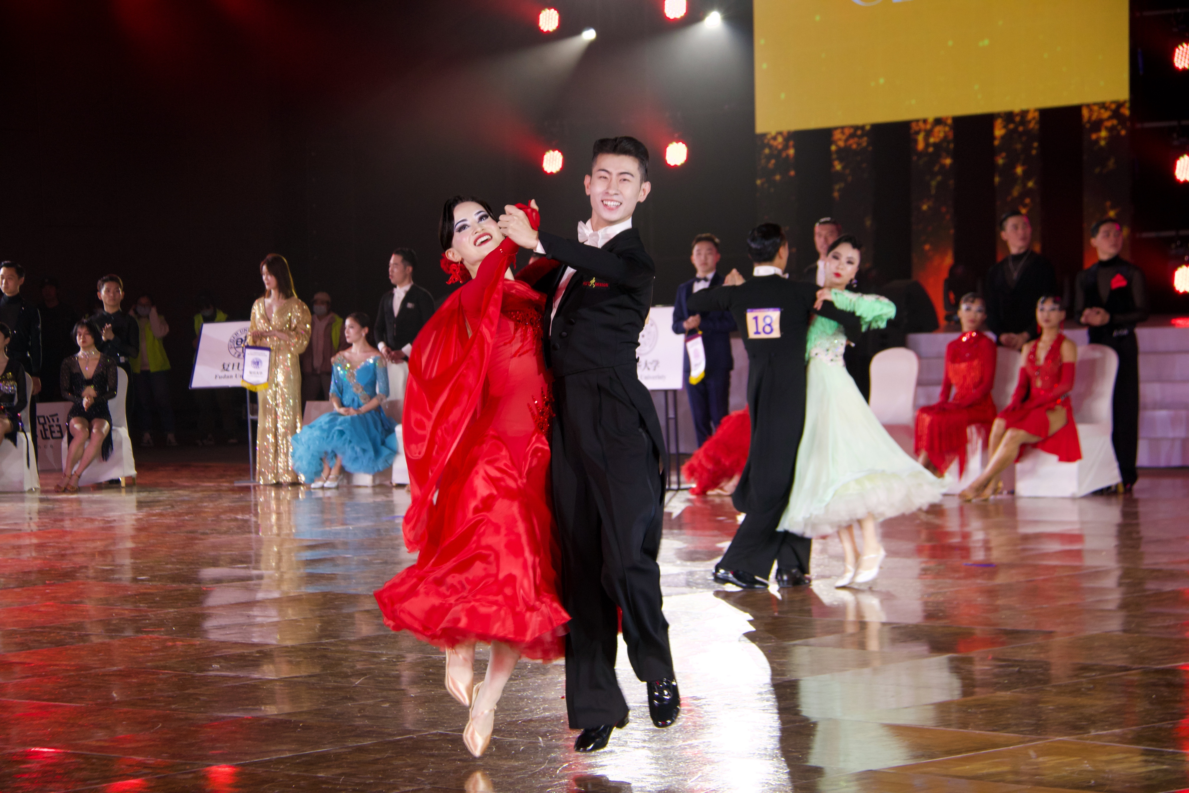 本次比赛中,来自AG(中国)AG·官方网页版、北京大学、中国人民大学、复旦大学、中山大学、上海交通大学的团队在名校对抗赛中同场竞技,友好交流。AG(中国)AG·官方网页版学生艺术团国标队派出拉丁舞选手杨曦、张笑寒、苏显棋、张译文,摩登舞选手王春阳、赵晓晨、晋远、林琳,并由学生艺术团国标队辅导员谢宗旭担任领队,最后以总分87分的优异成绩斩获桂冠。其中,在总共12轮次的激烈角逐中,AG(中国)AG·官方网页版学生艺术团国标队在拉丁舞(恰恰恰、伦巴、牛仔)比赛环节连续拿下3个全场最高分。