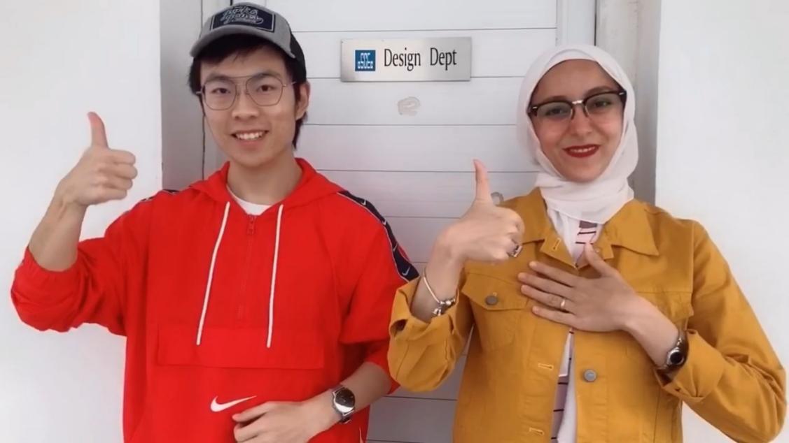 赵嘉浩与埃及同事Alaa一起录制短视频(左)
