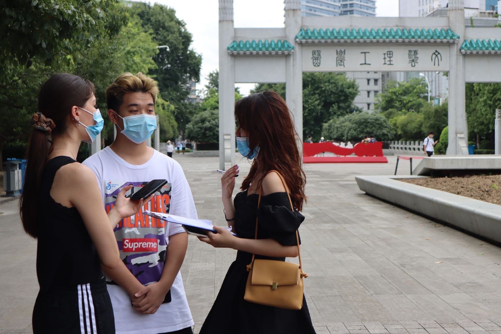 “华夏印象——疫情中的国际形象跨国调研”实践支队在武汉街头采访