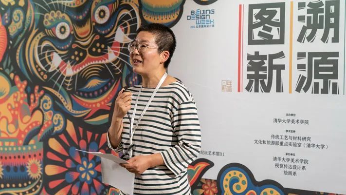 原博首先向来宾介绍了创作营的创办背景、实施过程和展览结构。原博表示,这些作品满载着创作营师生对年画的热忱、对技艺的执着以及对创意设计的独特表达,充实了年画的题材与精神内涵,拓展了年画应用的边界,为向美而行的人们提供了丰富的年画相关产品和美的滋养。原博认为,在学院教育资源面向社会教育延伸的过程中,年画日新创作营充分发挥学院的学术引领作用,一方面提升年画人的创新意识,一方面促进艺术设计人才参与传统工艺与文化的创新工作,从民间艺术中汲取养分,创作出符合当代人审美期待与生活方式的年画作品及衍生产品。