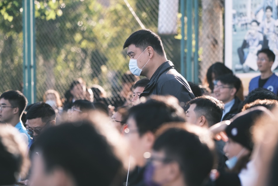 时代论坛结束后,姚明走进紫荆篮球场,与同学们一起参与了2021-2022学年“紫荆之巅”本科生班级篮球赛的开赛仪式。来自上赛季“紫荆之巅”四强班级的球员代表与校二队球员代表组成红、蓝两队,携手为观众奉献了一节精彩纷呈的表演赛。