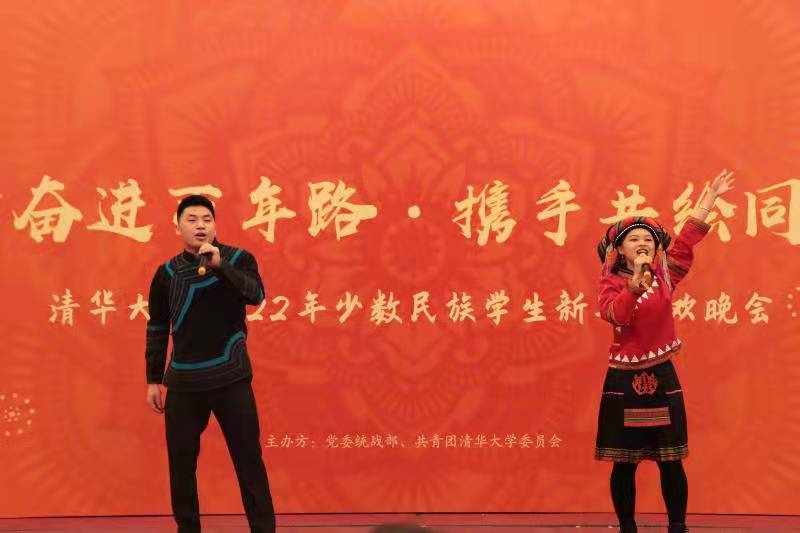节目开场,由土家族同学表演的摆手舞火热奔放,点燃了观众气氛,收获阵阵掌声。哈萨克族同学祖丽德孜,彝族学生阿都尔古、李汶亭,带来舞蹈《白天鹅》、歌曲《带我到山顶》等民族特色节目。第24届研究生支教团合唱的歌曲《无问》《与你西行》,展现了清华学子的情怀与追求。
