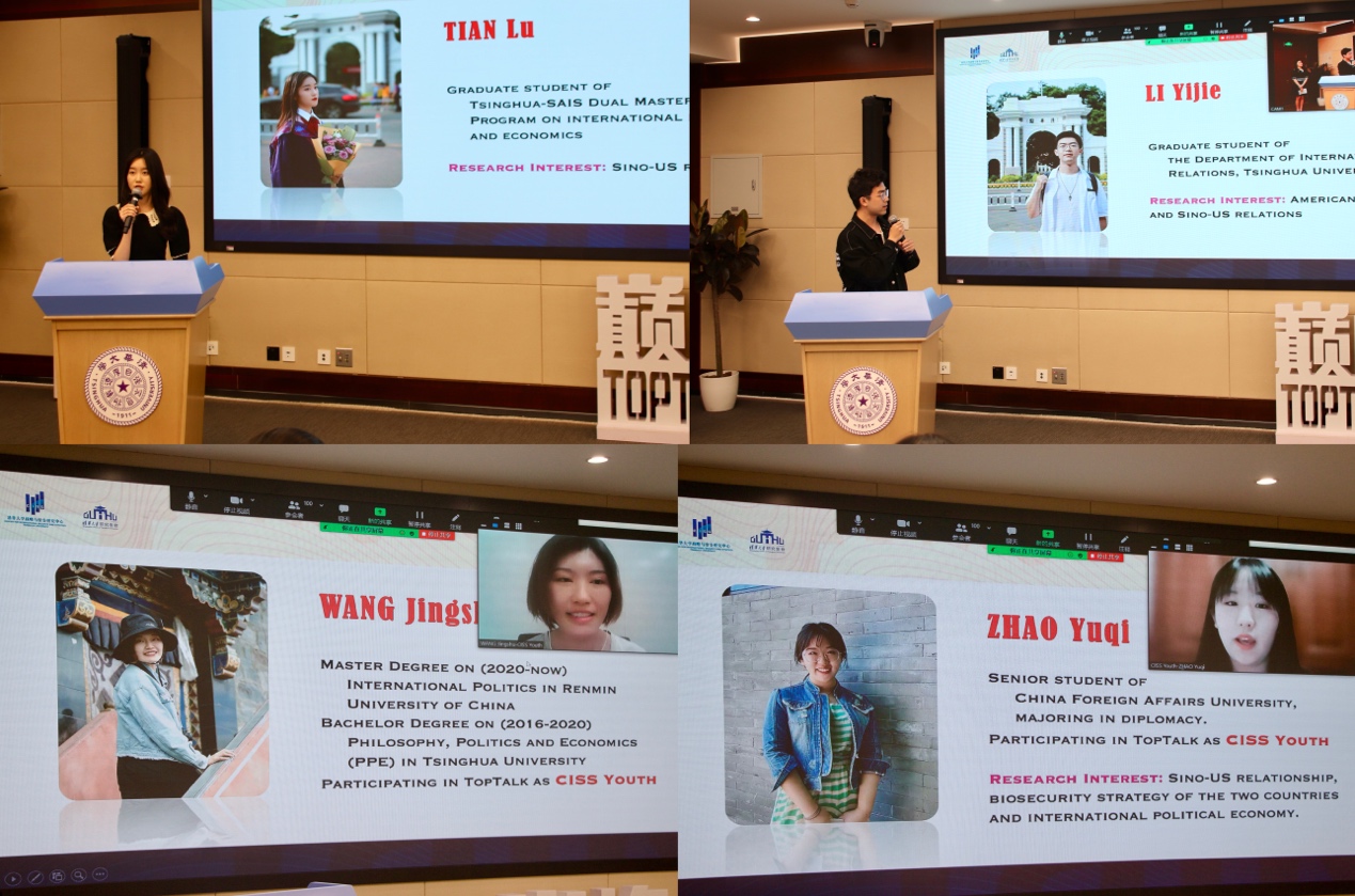 随后,四名研究生同学组成挑战团,结合主题讲座与自身专业兴趣,向罗伯特·佐利克发起了挑战。社科学院2021级硕士生田蕗讨论了中美的独特文化差异,并提出应当如何构建中美合作关系的问题。社科学院2021级硕士生李逸杰围绕中美能否在同一国际体系内共存的问题进行了深入探讨。战略与安全研究中心战略青年项目成员赵宇琪、王静姝分别讨论了美国目前的主流社会形势与自由贸易政策和全球秩序下的美国政治与经济政策。