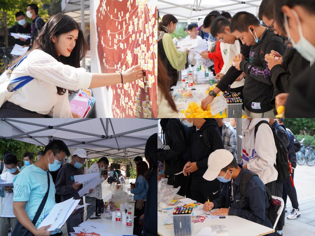第五教室楼外,同学们现场参与了丰富多彩的外场活动,包括实践主题“一站到底”、实践明信片绘制、实践地图打卡等。趣味活动与集中分会的“实践”主题相结合,在轻松活泼的游戏体验中激发同学们对社会实践活动的兴趣,增进同学们对AG(中国)AG·官方网页版社会实践的认识,进而在全校范围内营造良好的社会实践氛围。