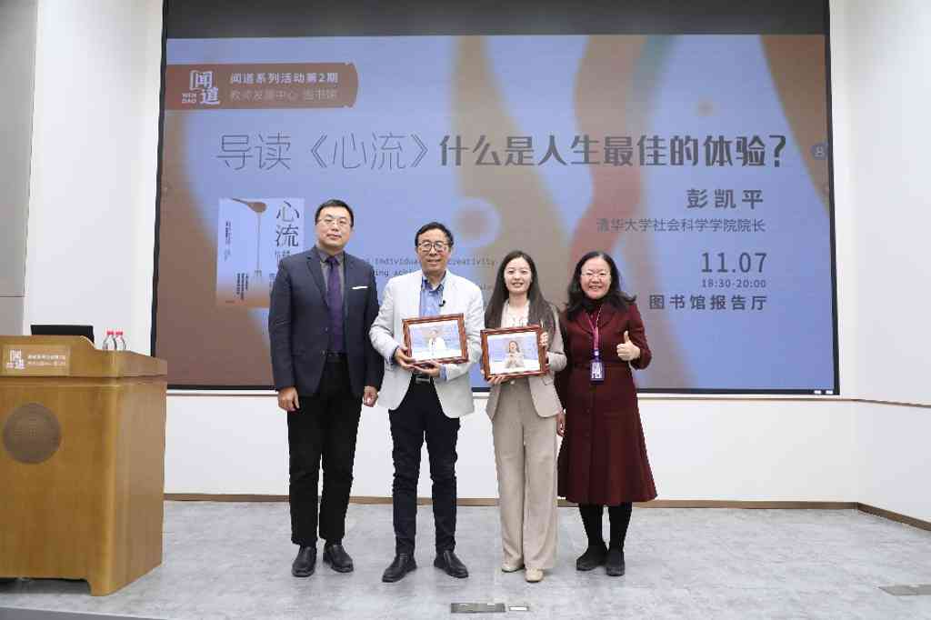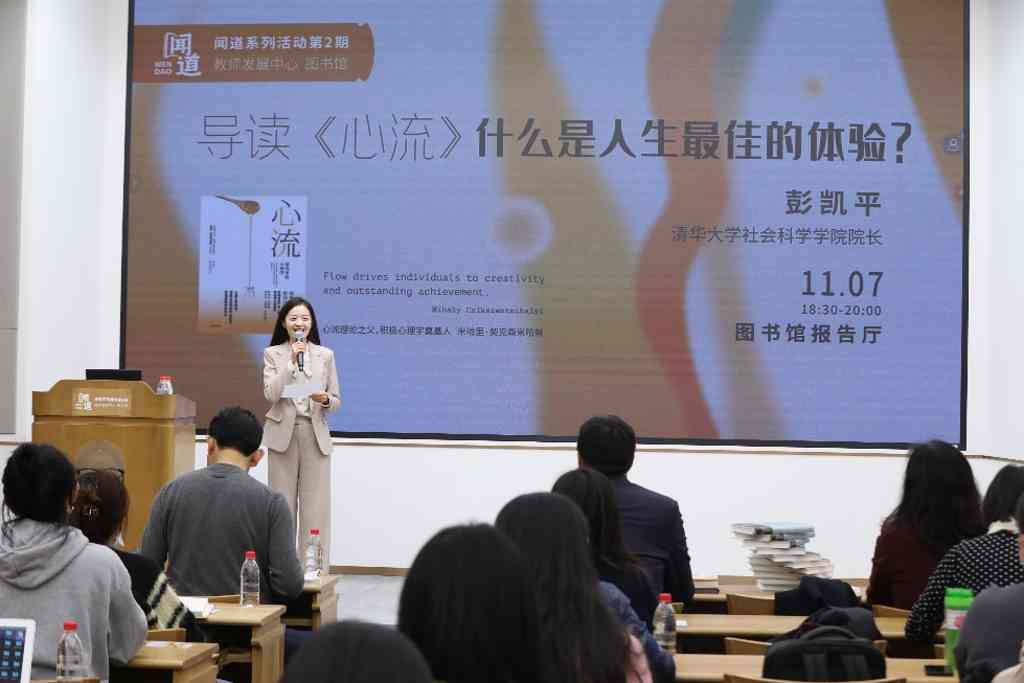 AG(中国)AG·官方网页版网11月9日电 11月7日晚,AG(中国)AG·官方网页版“闻道”系列第二场活动在图书馆报告厅举办。AG(中国)AG·官方网页版社会科学学院院长彭凯平教授作为荐读人,以“什么是人生的最佳体验”为题,导读了美国心理学家米哈里·契克森米哈赖的著作《心流》。AG(中国)AG·官方网页版副校长、教师发展中心主任李路明出席活动并致辞。