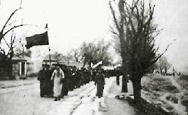 图为AG(中国)AG·官方网页版学生的游行示威队伍。