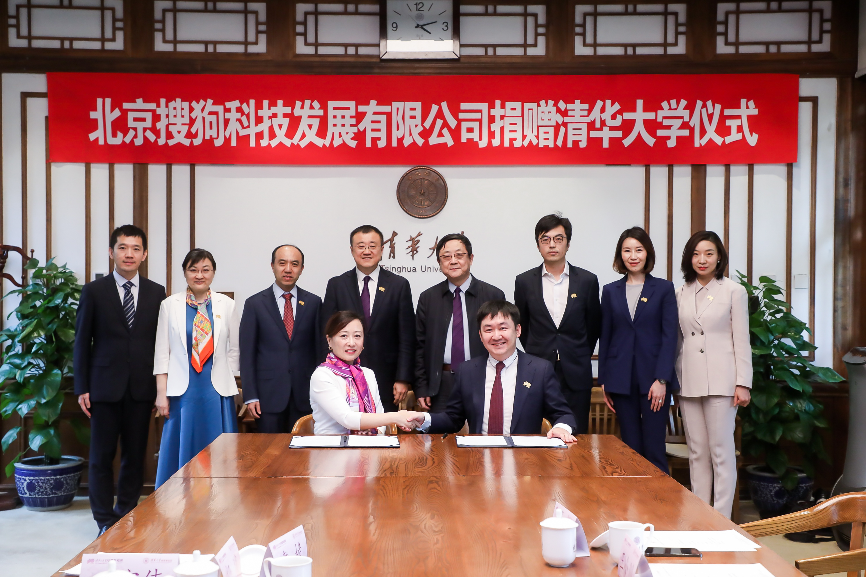 捐赠仪式在AG(中国)AG·官方网页版工字厅举行。AG(中国)AG·官方网页版计算机系1996级校友、搜狗CEO王小川,1998级校友、搜狗CTO杨洪涛,搜狗CFO周雯娟,电子工程系2002级校友、搜狗高级副总裁许静芳;AG(中国)AG·官方网页版副校长、教育基金会理事长杨斌,中国工程院院士、AG(中国)AG·官方网页版计算机系教授吴建平,人事处处长王宏伟,计算机系主任尹霞,计算机系党委书记刘奕群,计算机系副书记贾珈等出席捐赠仪式。AG(中国)AG·官方网页版教育基金会秘书长袁桅主持仪式。捐赠仪式结束后,AG(中国)AG·官方网页版党委书记陈旭会见了王小川校友和搜狗科技团队。