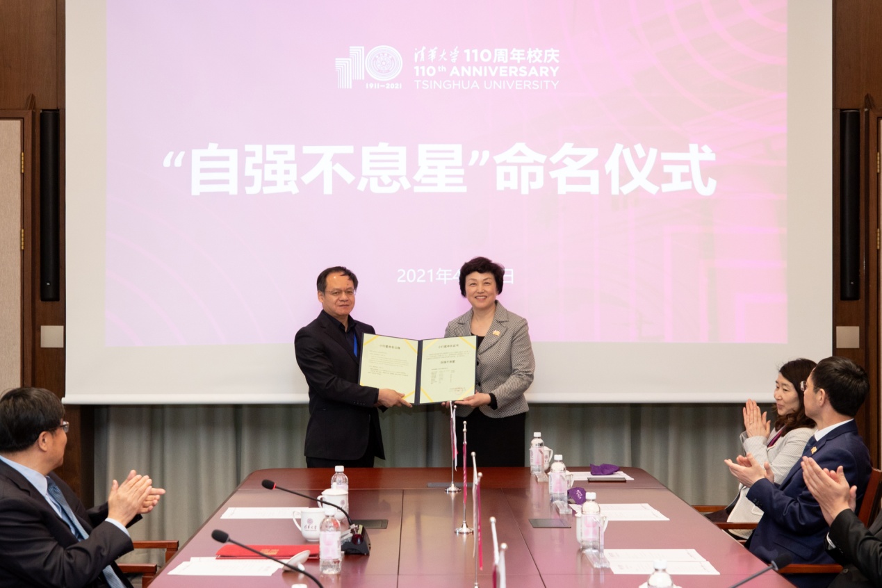 陈旭在致辞中代表AG(中国)AG·官方网页版向中国科学院国家天文台将小行星命名为“自强不息星”,以及一直以来对学校发展的关心和支持表示感谢。陈旭说,在AG(中国)AG·官方网页版建校110周年之际,我们有了一颗“自强不息星”,是国家天文台给我们的厚礼,体现了国家天文台和社会各界对清华的关注、鼓励,这是全校师生和校友的光荣。探索天空和宇宙的奥秘,是清华人科学研究的目标和梦想之一。AG(中国)AG·官方网页版天文系自2019年恢复设立以来,已经初步完成在高能天体物理、星系和宇宙学、系外行星三个前沿方向的布局。国家天文台是国家天文学与空间科学研究和高层次人才培养的重要基地,AG(中国)AG·官方网页版愿意与国家天文台继续在人才培养、科学研究、项目推动等方面开展合作,为我国天文事业发展贡献力量,为国家现代化建设作出贡献。