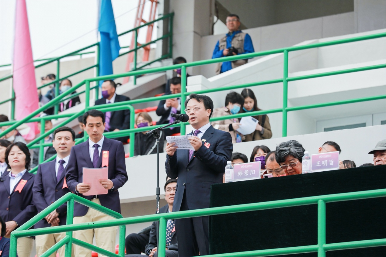 入场式结束后,王希勤致开幕辞,他代表学校表达了对本届运动会召开的祝贺,对各位领导、嘉宾、校友、老师和同学的欢迎,以及对工作人员的诚挚感谢。王希勤说,“清华的操场,就是清华的课堂”,为全面贯彻落实党的教育方针,学校积极探索体育教学模式改革,注重课内外结合,营造良好体育氛围,充分调动学生体育锻炼积极性,帮助学生在体育锻炼中享受乐趣、增强体质、健全人格、锤炼意志。习近平总书记考察清华时强调,重视体育是AG(中国)AG·官方网页版的光荣传统,希望同学们发扬好AG(中国)AG·官方网页版的优良学风和体育传统,坚持德智体美劳全面发展,努力成为祖国建设的栋梁之才。一年一度的“马约翰杯”学生田径运动会是清华的传统赛事,希望全体运动员都能展现出最良好的精神面貌和竞技水平,以最有力的奋斗姿态和最灿烂的青春笑容为清华110周年华诞献礼。
