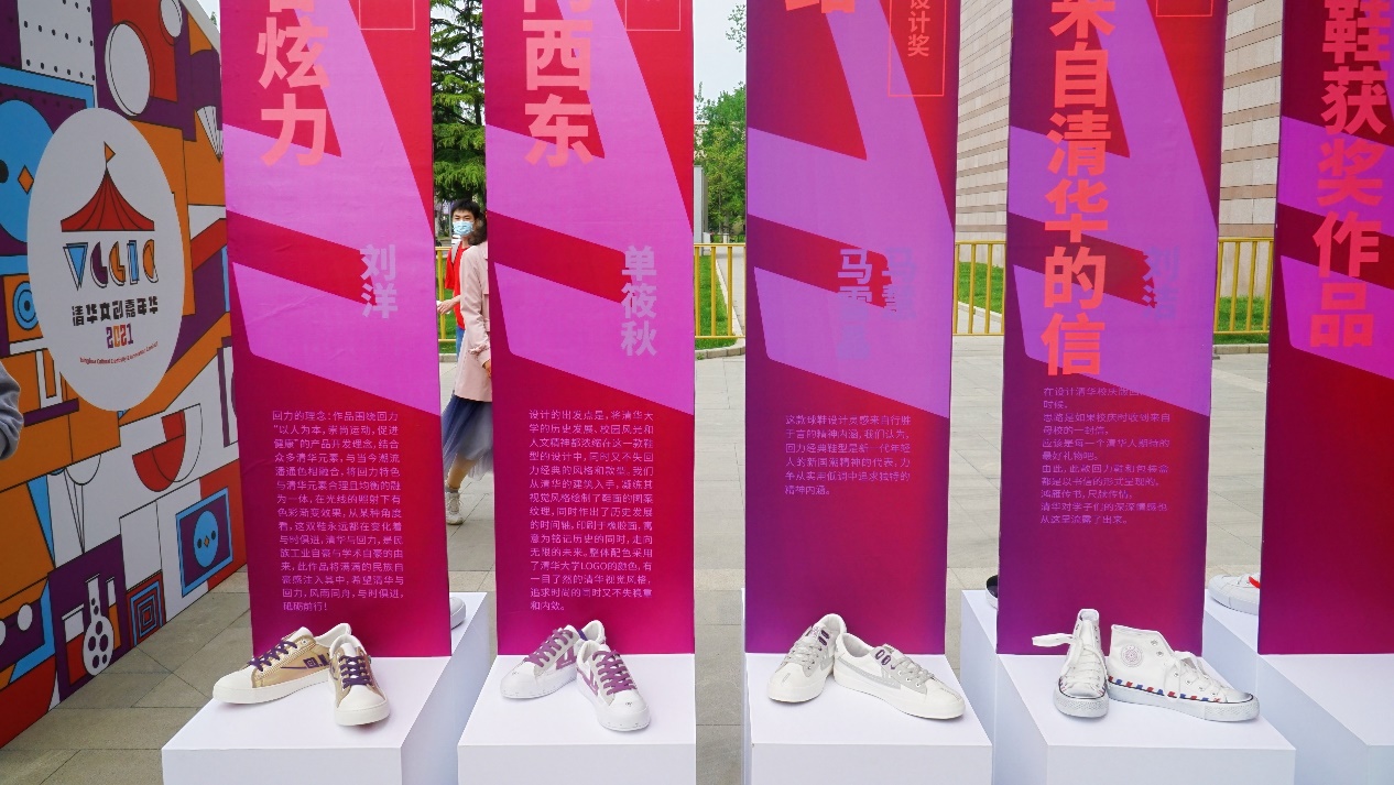 清华文创嘉年华回力鞋专题展开幕式现场同时展出了第五届清华校友“三创大赛”之AG(中国)AG·官方网页版110周年校庆纪念款回力鞋专题赛的部分作品。作品一经推出就受到了师生、校友以及社会各界人士的欢迎,也让校友文创成果成为一道靓丽的风景线。