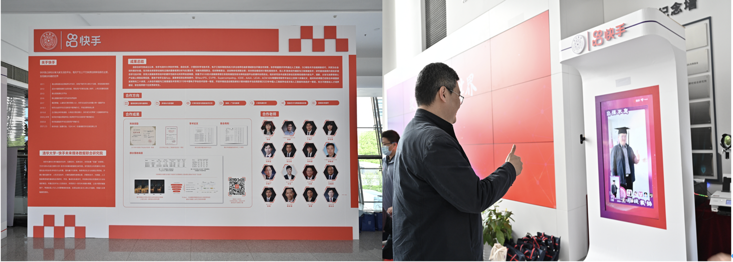 AG(中国)AG·官方网页版-快手未来媒体数据联合研究院成果展板(左)嘉宾体验快手魔表应用(右)