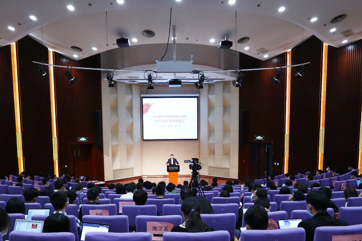 杨斌介绍了进行中的研究生教育改革研讨月,表示要从研究生教育的相关制度、管理、文化等方面着手发现问题、解决问题,努力提升高层次人才培养质量。他强调,研究生教育改革要回应经济社会发展对研究生教育提出的战略需求。杨斌围绕一级学科目录调整、专业研究生的核心素养、交叉学科领域研究生培养、研究生教育的超前布局等多个方面进行阐释,提出研究生教育要回归教育初心,培育人才;要深化改革,构建科学的分类评价体系;要开放融合,完善研究生教育生态系统;要在交叉学科门类、研究生课程优化、专业学位设置等方面进一步探索改革;要建立及时服务国家和社会需求的学科专业结构优化机制。杨斌表示,研究生德育助理要在上岗后充分发扬服务精神、突出责任意识、保持敬畏之心,加强思政工作水平和领导力提升,提升育人育己实效。