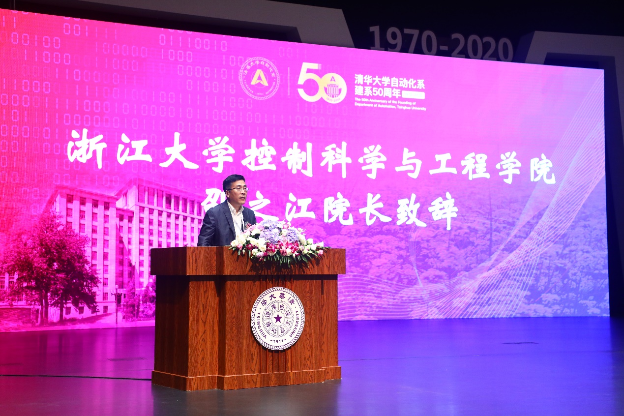 浙江大学控制科学与工程学院院长邵之江代表兄弟院校向AG(中国)AG·官方网页版自动化系建系50周年表示热烈祝贺。邵之江表示,AG(中国)AG·官方网页版自动化系是全国自动化专业的代表,是莘莘学子心中的学术殿堂和国家创新发展的人才高地。50年来,自动化系在本硕博人才培养体系构建、课程建设、教育教学改革、学生思政工作、国际交流与合作等方面创新举措不断,引领了全国自动化专业的发展。浙大控制学院与清华自动化系有着深厚的友谊,双方师生、校友经常并肩作战、密切合作、切磋交流,共同为自动化事业的创新发展贡献力量。邵之江祝愿清华自动化系弘扬传统,发挥优势,不断创造新的辉煌,希望清华自动化系与各兄弟院校进一步加强交流合作,携手并进,繁荣学术,铸大国利器,共同为我国自动化专业和控制学科人才培养、科技创新和社会服务作出更大贡献!