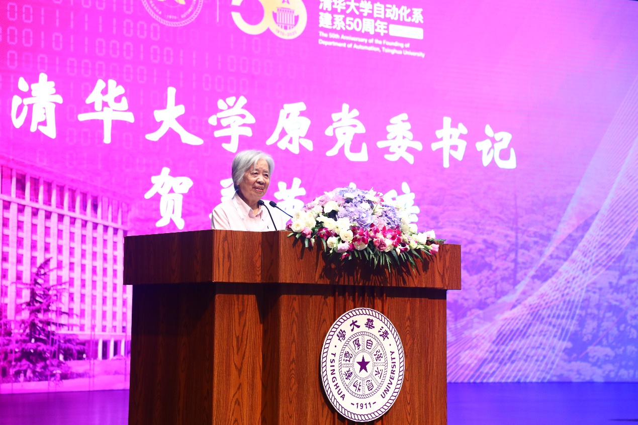 校党委原书记贺美英回顾了在自动化系任教的经历并表示,为自动化系师生付出的努力、取得的成绩、作出的贡献感到骄傲。贺美英说,50年来,国家和世界都经历了很多重大变化甚至是转折。在这一过程中,自动化系一代代师生努力奋斗,在师资队伍、教育教学、科学研究、社会服务等各个方面都取得了优异成绩。未来还会有更多的挑战和变化,自动化系也承担着重要责任。贺美英对自动化系的未来发展提出几点希望。一是要居安思危,迎难而上,顺利时不能贪图安逸,满足现状,要有前瞻意识、危机意识;遇到困难和挑战时,也不要泄气松劲,要勇往直前,往往在坚持一下的努力中就会迎来曙光。二是要保持和发扬传统,在学科上坚持走交叉创新道路,在育人上坚持又红又专、全面发展。三要团结协作,共同进步,既要和国内外自动化同行团结协作,也要和校内不同学科、院系、部门单位之间团结协作,谋求更多的支持、激励、交叉、响应和放大。