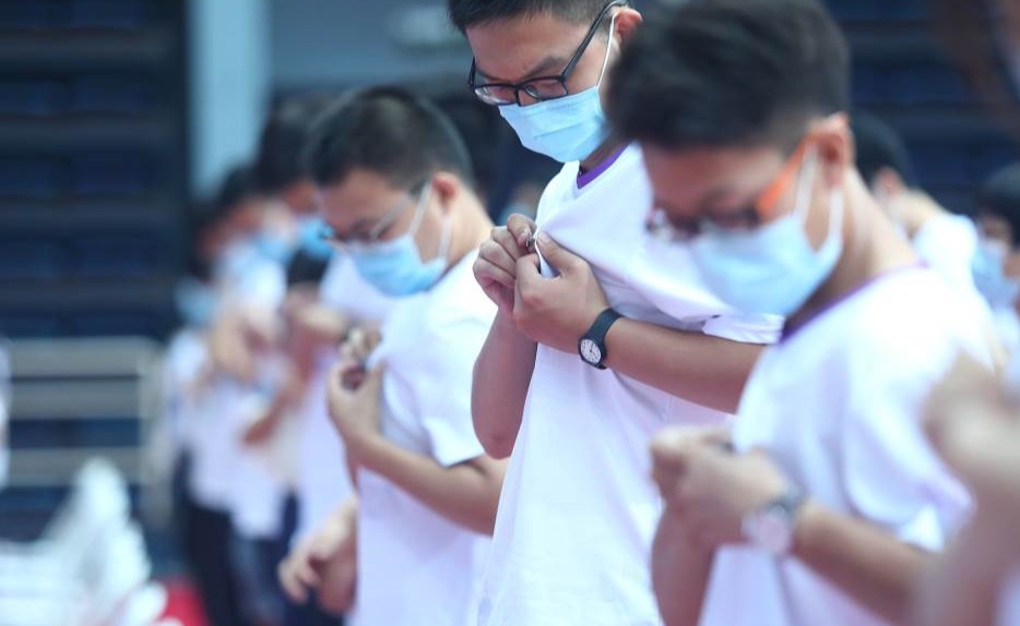 在西体育馆的新生们