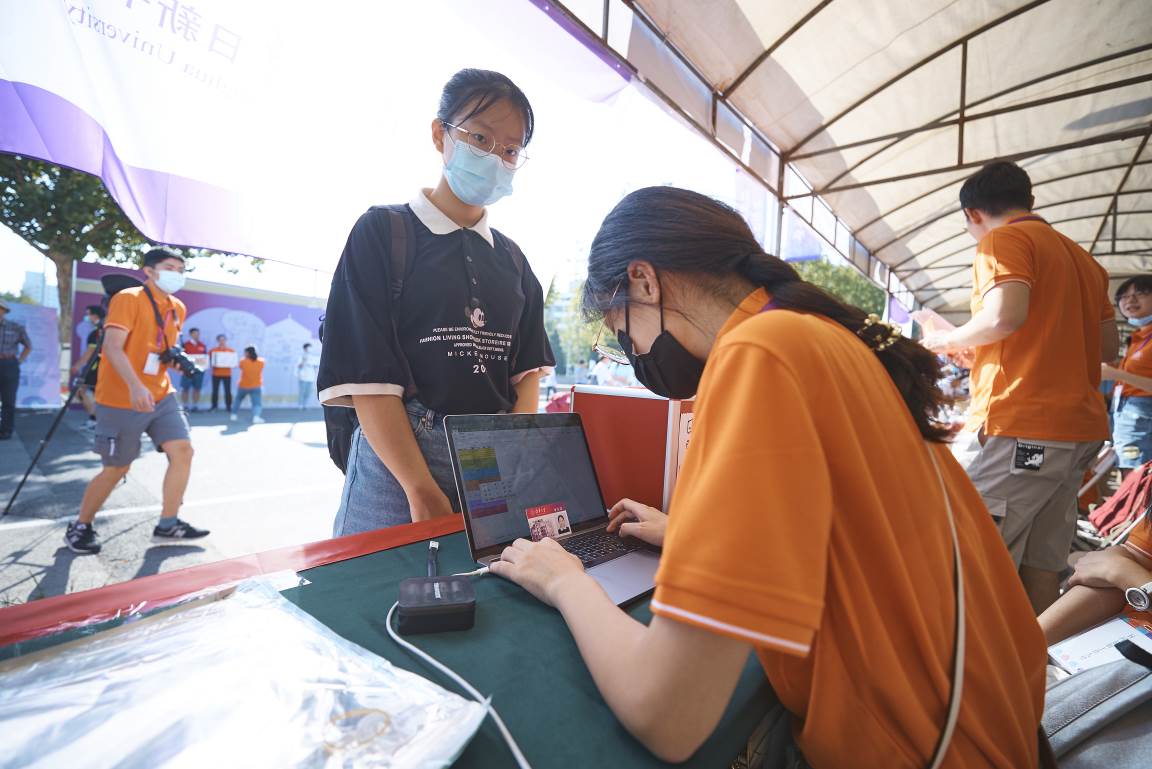 不到7点,就陆续有新生抵达了紫荆学生区。写着“清华欢迎你”的展板首先向新生致以问候,红色的欢迎拱桥和紫操上飞扬的气球,让学生区四处洋溢着欢乐热情的氛围。等候多时的迎新志愿者和老师早已将报到现场布置得井井有条,新生在他们的指引和帮助下,10分钟就能完成报到手续。报到结束,学生拿着内含防疫指南、新生手册、作业纸和书院纪念衫等在内的新生大礼包,正式开启在清华丰富多彩的校园生活。