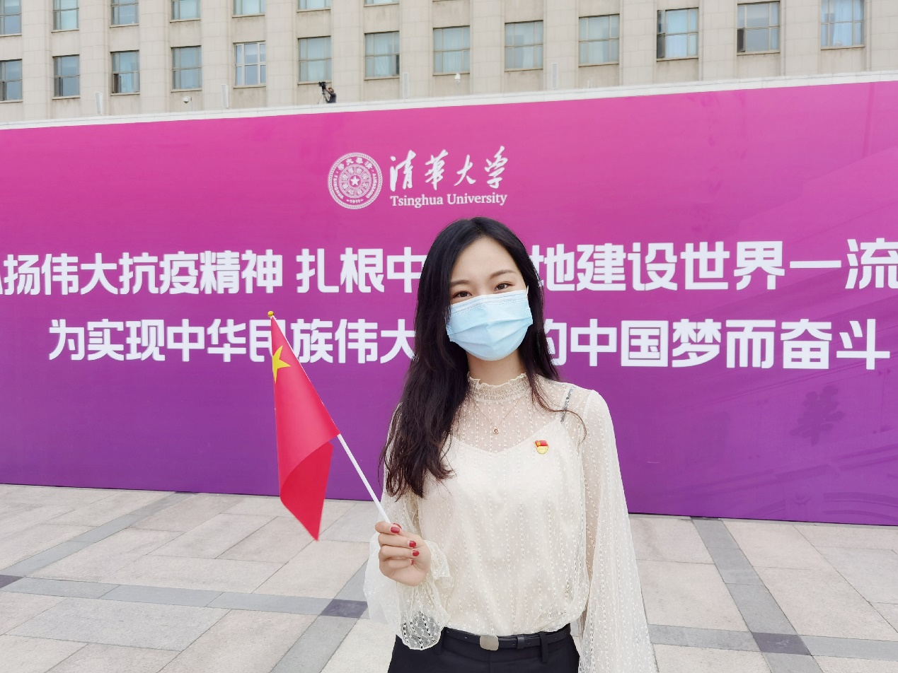 来自法学院的硕士新生蒋佳佳是一位壮族女孩,五星红旗冉冉升起的画面深深印在了她的脑海里。“这是一个看似普通但极不平凡的开学日,背后凝聚的是中国共产党坚强领导的奋斗以及十四亿中国人民同心抗疫的努力。”在聆听了陈旭老师的国旗下讲话后,她深受感动:“清华儿女始终与中华民族同呼吸共命运。这是我研究生入学的第一个开学日,我将时刻不忘初心,砥砺前行,做五星红旗灿烂光华中淡淡的一笔。”