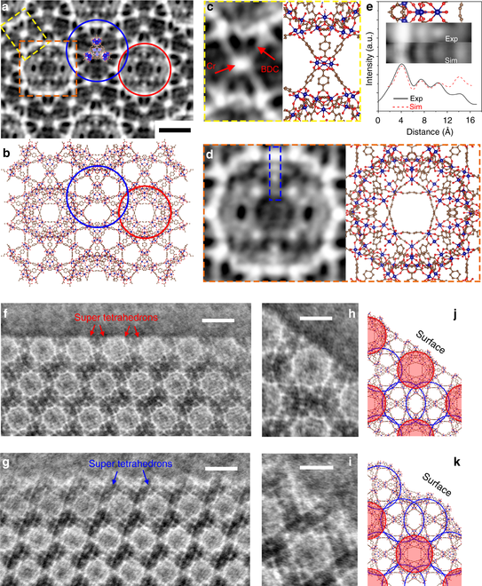 图2  MIL-101原子级分辨率下的孔结构及表面结构