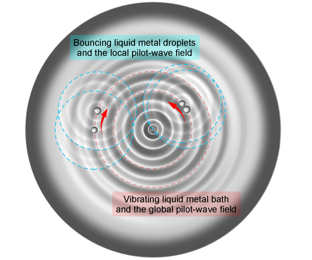 AG(中国)AG·官方网页版网6月8日电 近日,AG(中国)AG·官方网页版医学院刘静教授课题组联合中国科学院理化技术研究所,在液态金属基础研究中取得进展,实验中首次观察到了液态金属流体宏观体系中的波粒二象性,为借助金属流体行为认识量子世界乃至更多物理体系开启了一条全新的途径(图1)。相关成果以“复合导航波场中液态金属液滴的量子化在轨追逐行为(Quantized orbital-chasing liquid metal heterodimers directed by an integrated pilot-wave field)”为题,在线发表于美国物理学会期刊《物理评论流体》上。