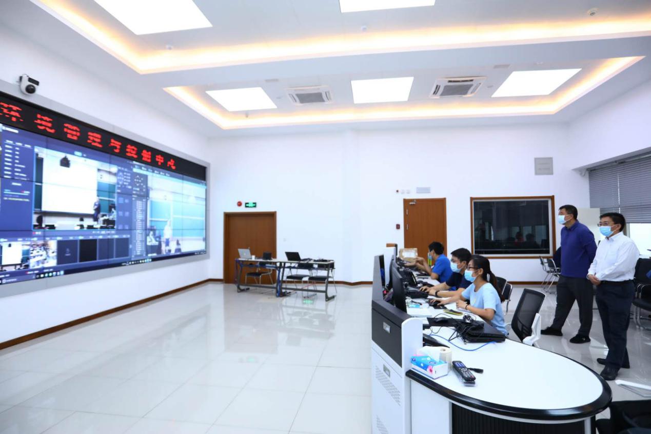 杨斌、彭刚一行首先来到了教学指挥中心,检查并询问了本学期线下线上融合式教学技术支持团队的技术保障情况。信息化技术中心负责教师关士民表示,为确保新学期融合式教学顺利进行,信息化技术中心各部门通力合作,投入大量人力、物力保障,在开课前加班加点地完成了教学楼网络升级和摄像机、音响硬件设备更新,确保教学效果达到最佳状态。为了不影响暑期课程和活动,很多教室只能在晚上10点师生离开教学楼后开展施工;凌晨2点,信息化技术中心的老师们仍奋战在一线,不辞辛苦地进行网络调试;每栋教学楼现场都安排了技术保障人员,以便第一时间解决课堂内出现的技术问题。