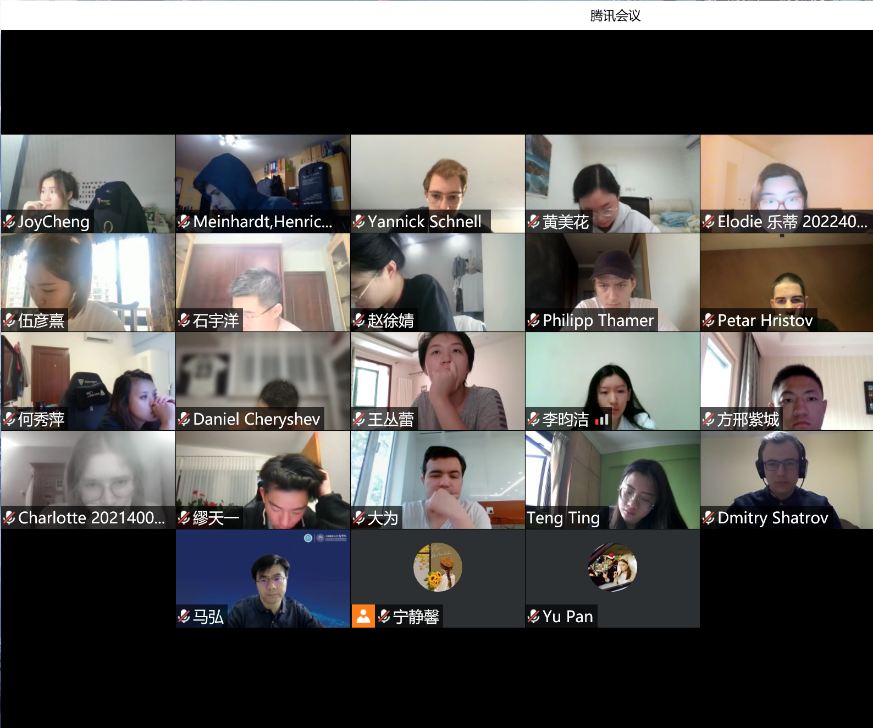“对于全球融合式课堂,我期望能形成一个开放的氛围,达到国内外学生积极交流、互相学习的目的。”马弘认为课堂上的互动对于线上线下相结合的教学模式而言是无比重要的。因此,他不仅会在课前设置一些与上一讲内容相关的习题,让同学们来解答,以此检验同学的听课效果,而且在讲课过程中,他也非常注重引导同学们对课程内容进行分析讨论,发表自己的看法。