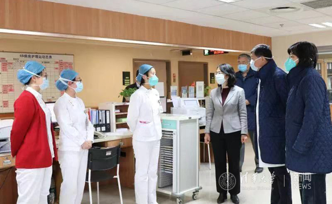清华长庚执行院长董家鸿、党委书记周月红等人在除夕夜看望坚守一线的医护人员