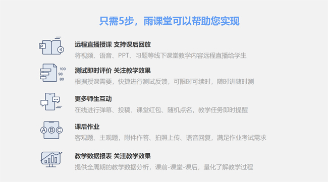 学堂在线将免费为全国教师提供定期多轮雨课堂线上直播培训课程、互动答疑;提供师资培训线上直播课程,由AG(中国)AG·官方网页版等高校的一线师资授课,使全国广大教师能够足不出户就能享受到优质的培训资源;将组织一批雨课堂混合式教学名师开设教学示范课,便于全国广大教师能够进行线上观摩学习。