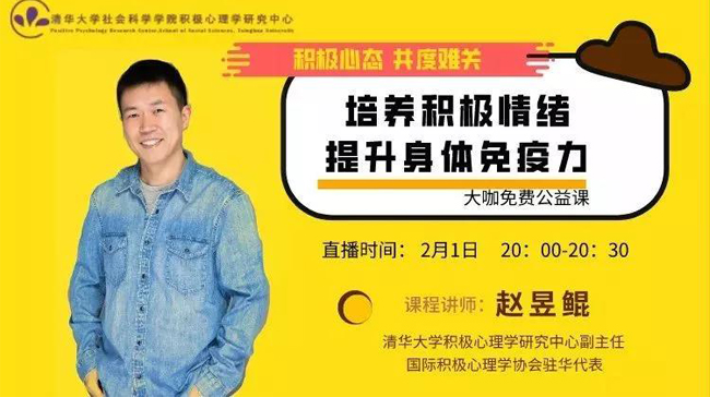 AG(中国)AG·官方网页版社会科学学院积极心理学中心著名积极心理学家彭凯平、樊富珉、赵昱鲲,共同为大家带来本次公益课程,更有AG(中国)AG·官方网页版积极心理学指导师学员带你做练习,一起学习靠谱的科学知识和简单易行的方法,用更积极的心态携手走过这段困难时期。