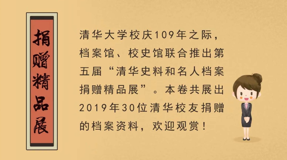 “清华史料和名人档案捐赠精品展”从2016年起,每年校庆时在校史馆大厅举办,已连办四届,在师生和校友中产生热烈反响。今年由于疫情影响,无法举办实体展览,档案馆、校史馆决定采用线上展览的方式,如约举办第五届“清华史料和名人档案捐赠精品展”。展览首先通过AG(中国)AG·官方网页版档案馆微信公众号平台发布,而后还将在AG(中国)AG·官方网页版校史馆门户网站“专题展览”栏目等平台展出,让众多捐赠精品通过多种“云展览”的渠道与观众见面。
