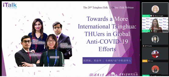 AG(中国)AG·官方网页版网5月13日电(通讯员 许鹤麟 王泽坤 彭予兴 陈弱霄)5月8日晚,AG(中国)AG·官方网页版研究生会主办的第28期iTalk活动在线上举行。本次活动以“全球抗疫中的清华人(Towards a More International Tsinghua: THUers in Global Anti-COVID-19 Efforts)”为主题,由中国、巴基斯坦、印度、俄罗斯四国青年分享自己的抗疫故事,引领中外学子共同思考全球化背景下的青年使命与担当。28个院系来自20个国家和地区的近150名听众一起参与了此次活动。