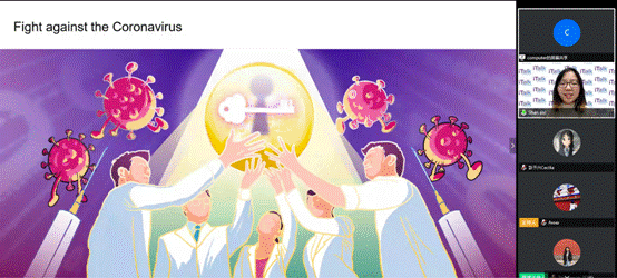 本次活动由新闻学院2017级硕士洪雁主持,医学院2015级博士生单思思、社科学院2015届硕士明竺(巴基斯坦籍)、苏世民书院2018届硕士卢盛霆(印度籍)、工业工程系2017届硕士宓河力(俄罗斯籍)四位嘉宾参与分享,并从疫苗攻关、新闻宣传、技术创新、物资捐赠四个维度展开讲述。