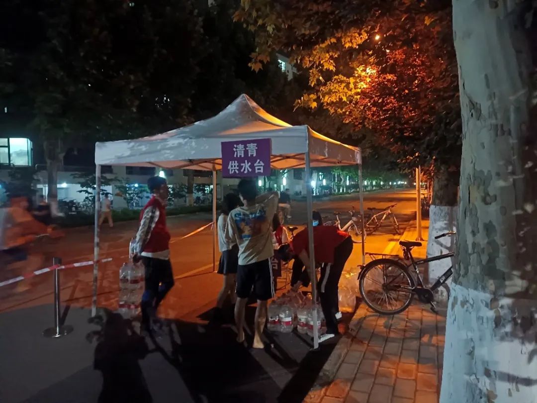 靠近主楼的院系,主动请缨,集体接力。自动化系、电机系、计算机系、软件学院的研究生同学们,在接收到志愿招募的信息后,报名踊跃,参与全时段供水点志愿服务工作。