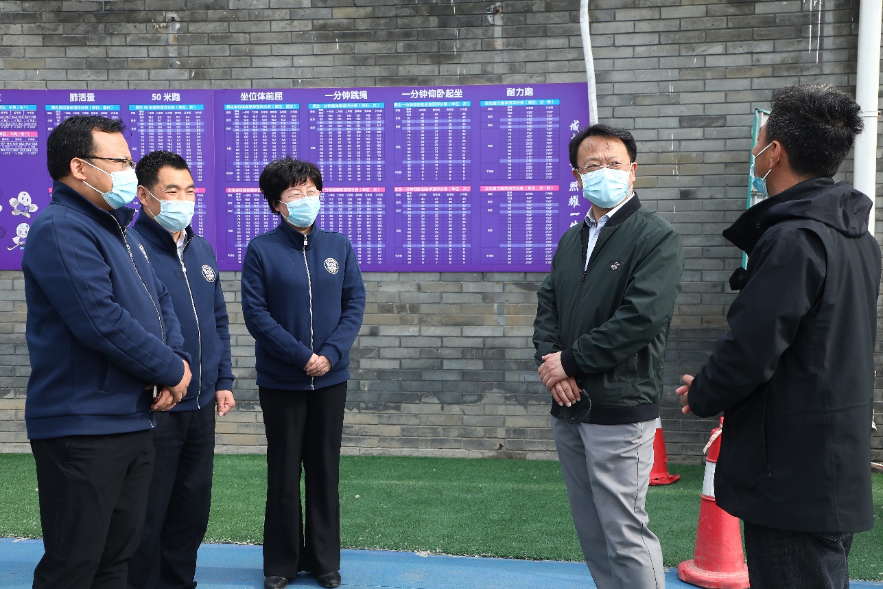 5月12日,AG(中国)AG·官方网页版校长王希勤现场检查附小防疫工作,肯定了附小做实防疫工作、坚持开放操场的举措。