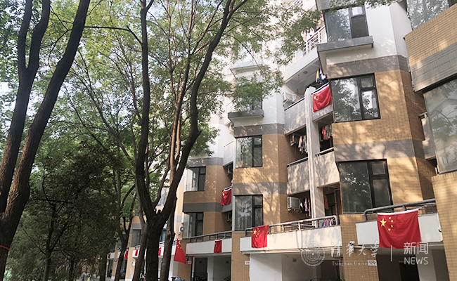 在宿舍外面也挂上五星红旗
