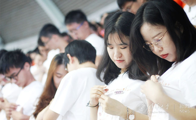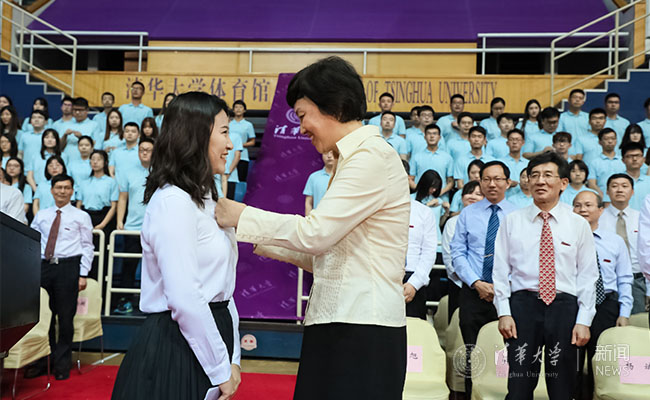 典礼上还举行了全体新生佩戴校徽仪式。校徽不仅代表着“清华人”的身份,更承载着清华“自强不息,厚德载物”的精神。校党委书记陈旭为新生代表张琳戴上了AG(中国)AG·官方网页版校徽。
