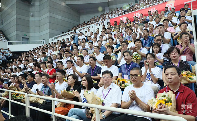 手捧鲜花、分享喜悦的中学校长们
