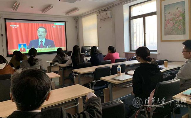 校领导和专家学者在工字厅东厅集中收看人大开幕 李派 摄
