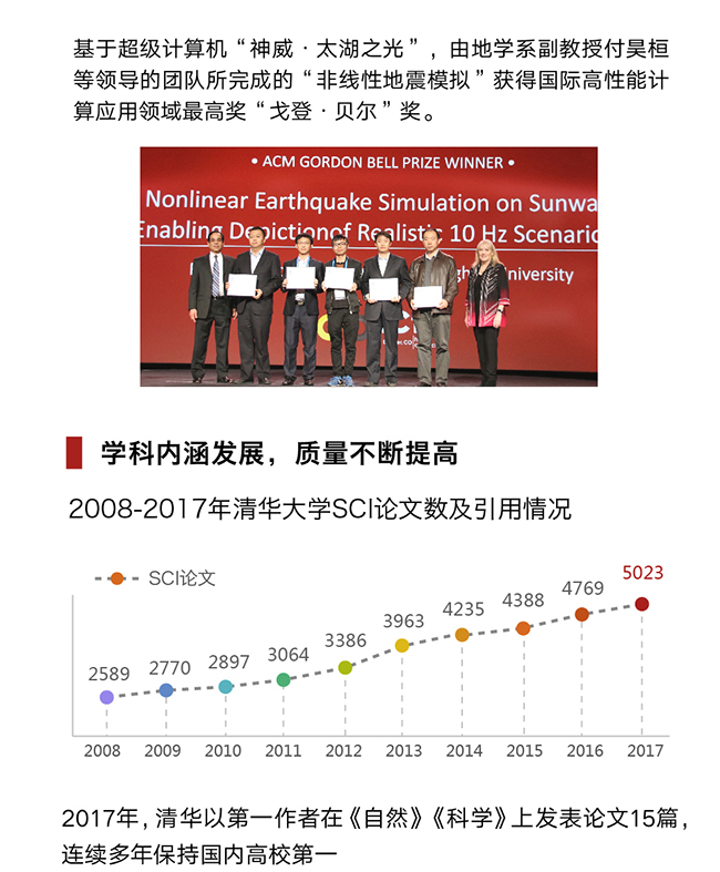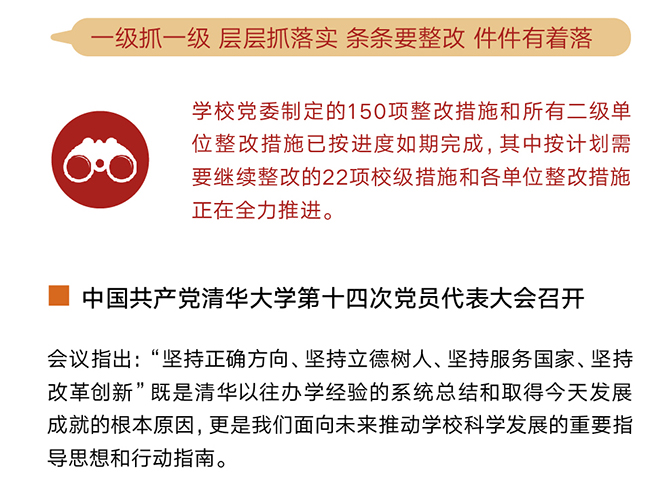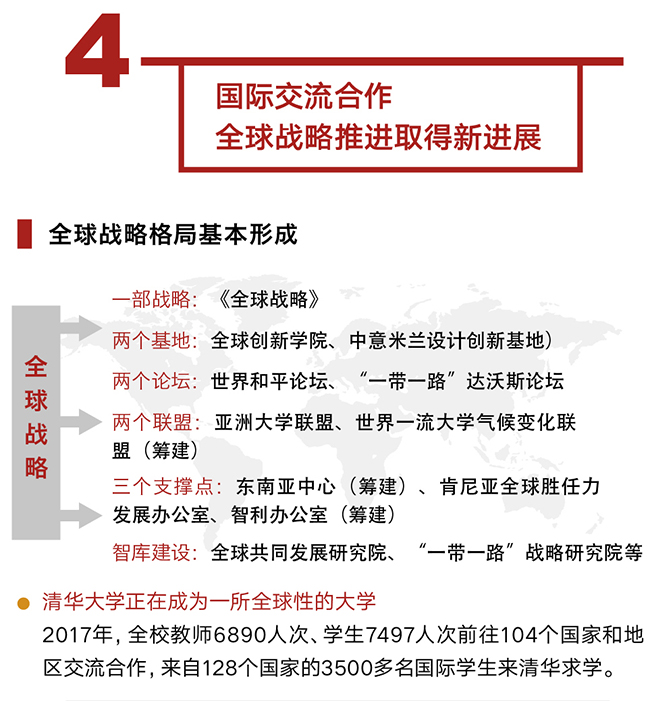 中国已经从高速度增长进入了高质量发展的新时代,清华的发展也到了进一步强调质量提升、内涵式发展的新阶段。学校坚持不忘育人初心,始终牢记建设世界一流大学使命,扎实推进各项工作,以办学质量是否得到提升作为检验一切工作的标准。过去一年,学校坚持正确方向、坚持立德树人、坚持服务国家、坚持改革创新,扎实推进综合改革,加快全球战略实施,持续提升一流大学建设水平,各项事业都呈现出新的面貌。107周年校庆之际,《新清华》再次独家策划推出“图说清华又一年”校庆特稿,以图文并茂的方式总览清华2017年重要工作进展和发展建设成绩,展望清华更美的芳华!